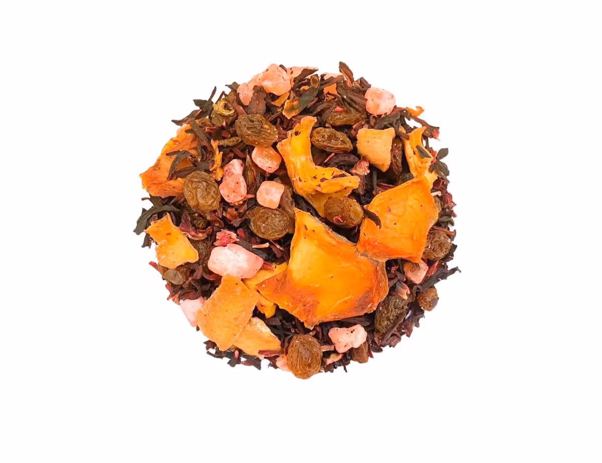 Hibiskusblommorna ger teet en frisk och syrlig smakprofil och tillför en härlig röd färg. Honungsmelonen ger en söt och saftig smak som förhöjer smakupplevelsen och ger en förförisk touch till teet.